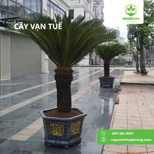 Cây Cảnh Trang Trí: Với vẻ đẹp độc đáo, Vạn Tuế được trồng làm cây cảnh trang trí ở nhiều nơi: